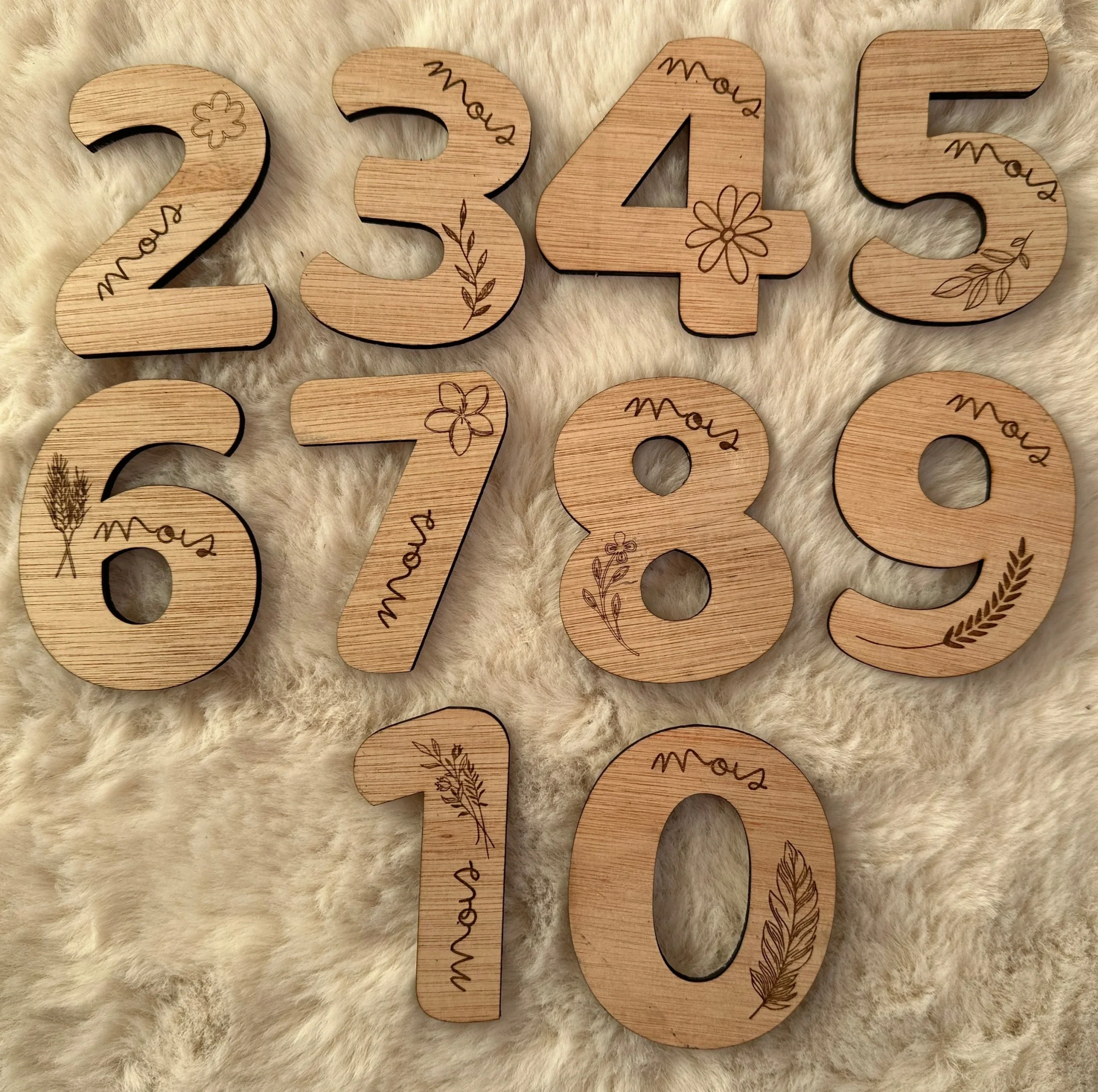 🌿 Cartes étapes bébé en bois – Set de 11 chiffres
