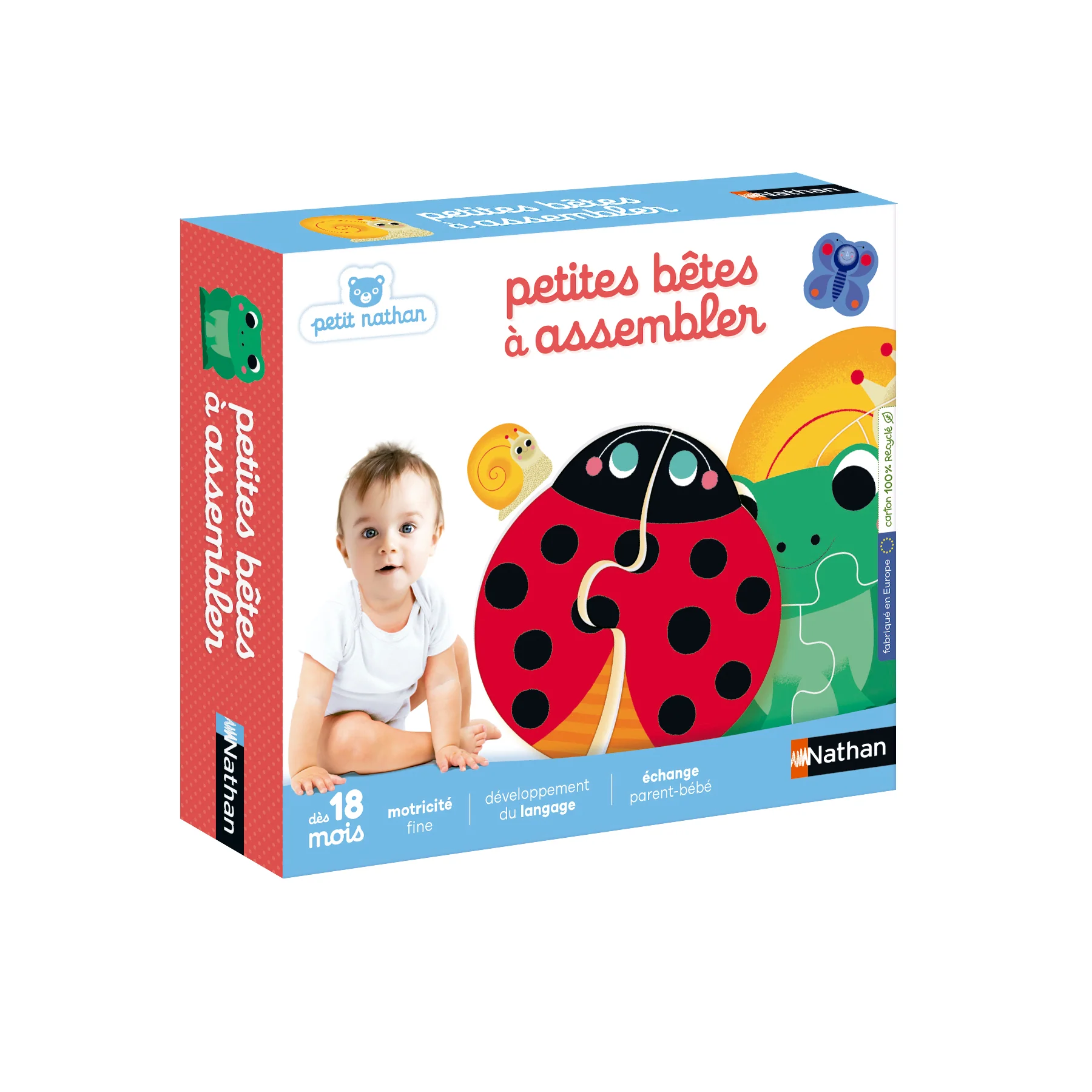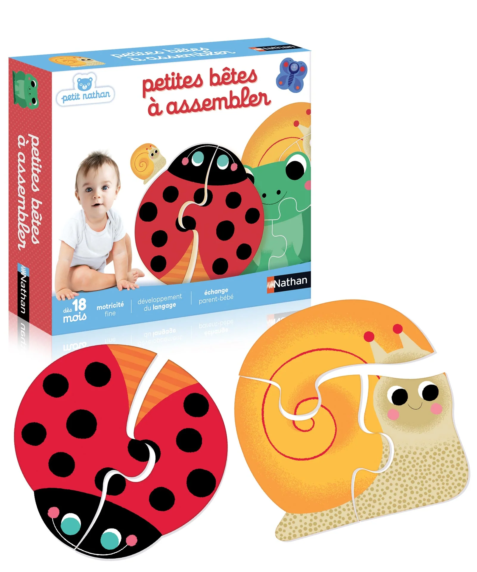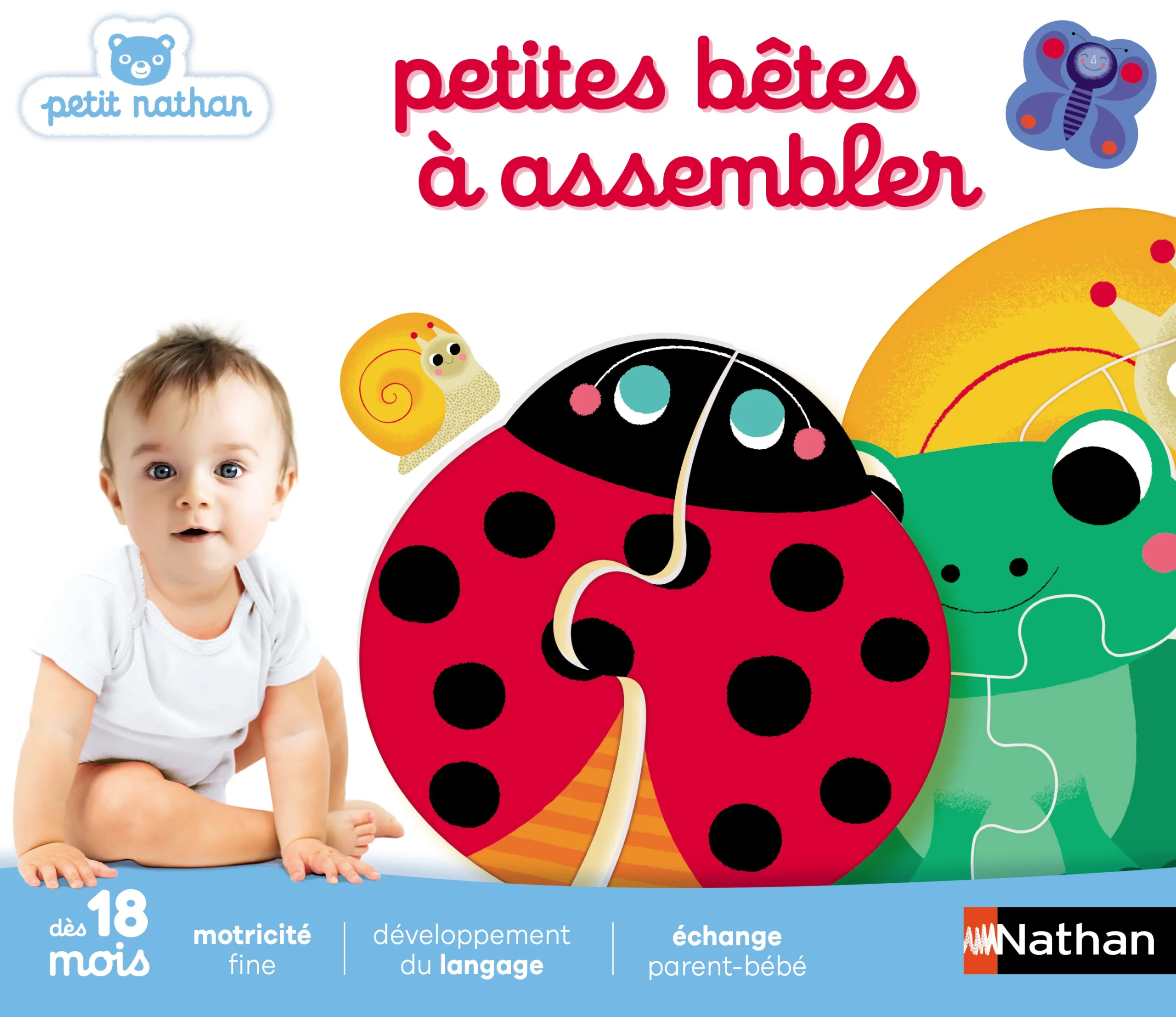 Attraper, soulever, manipuler : tout le corps du bébé est actif. Séparer, assembler, reconstituer une image complète sollicite ses capacités de représentation. Un temps de jeu et de plaisir partagés avec les parents qui soutient l’attention conjointe. Thème : les petites bêtes