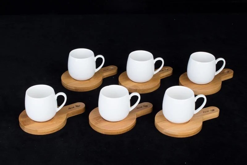 Acar vous propose cet ensemble de tasses en porcelaine blanche avec 6 soucoupes rondes en bambou qui transporteront la chaleur du bois à vos présentations. Conçu à partir de porcelaine blanche de qualité, vous admirerez la simplicité de l’ensemble de tasses à café, avec une forme ovale moderne. La soucoupe de bambou inspirée du design de la planche à découper, ajoutera du naturel à vos présentations.