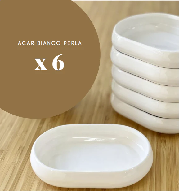 ACAR BIANCO PERLA MOON Lot de 6 petites assiettes ovales 13,2 x 9,5 x 2,8 cm