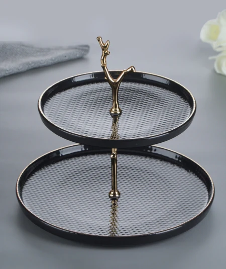 Présentoir à gâteau à 2 étages noir
