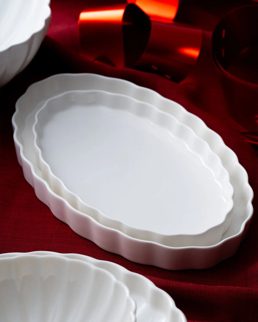 ACAR BIANCO PERLA MOON Lot de 2 grandes assiettes ovales de présentation 26,8 x 16 x 2 cm