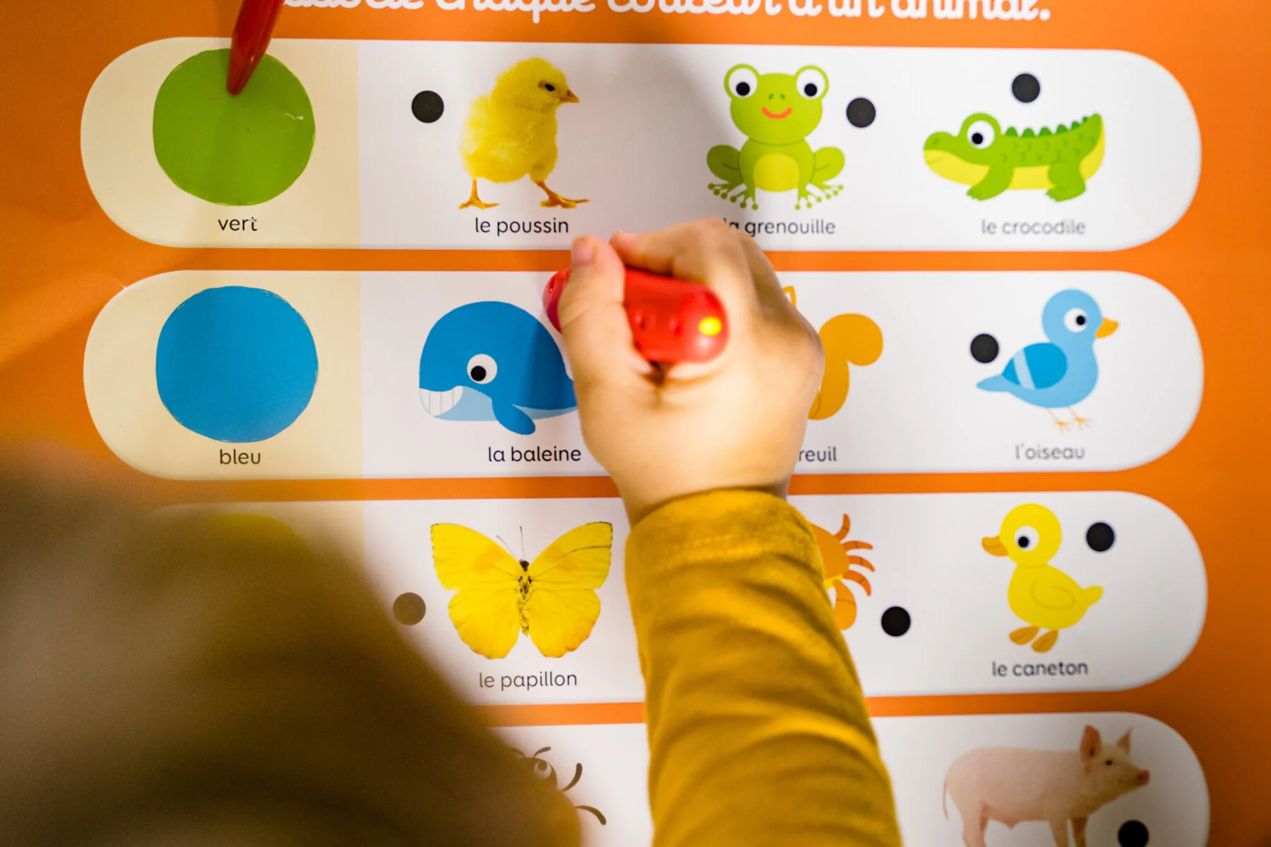 Un jeu électronique de questions-réponses sur les premières notions d’apprentissage adapté aux tout-petits dès 2 ans. Relie la question et la réponse avec la pointe du stylo. Si le stylo s’allume, bravo ! La réponse est bonne. Un jeu éducatif pour apprendre en s’amusant.