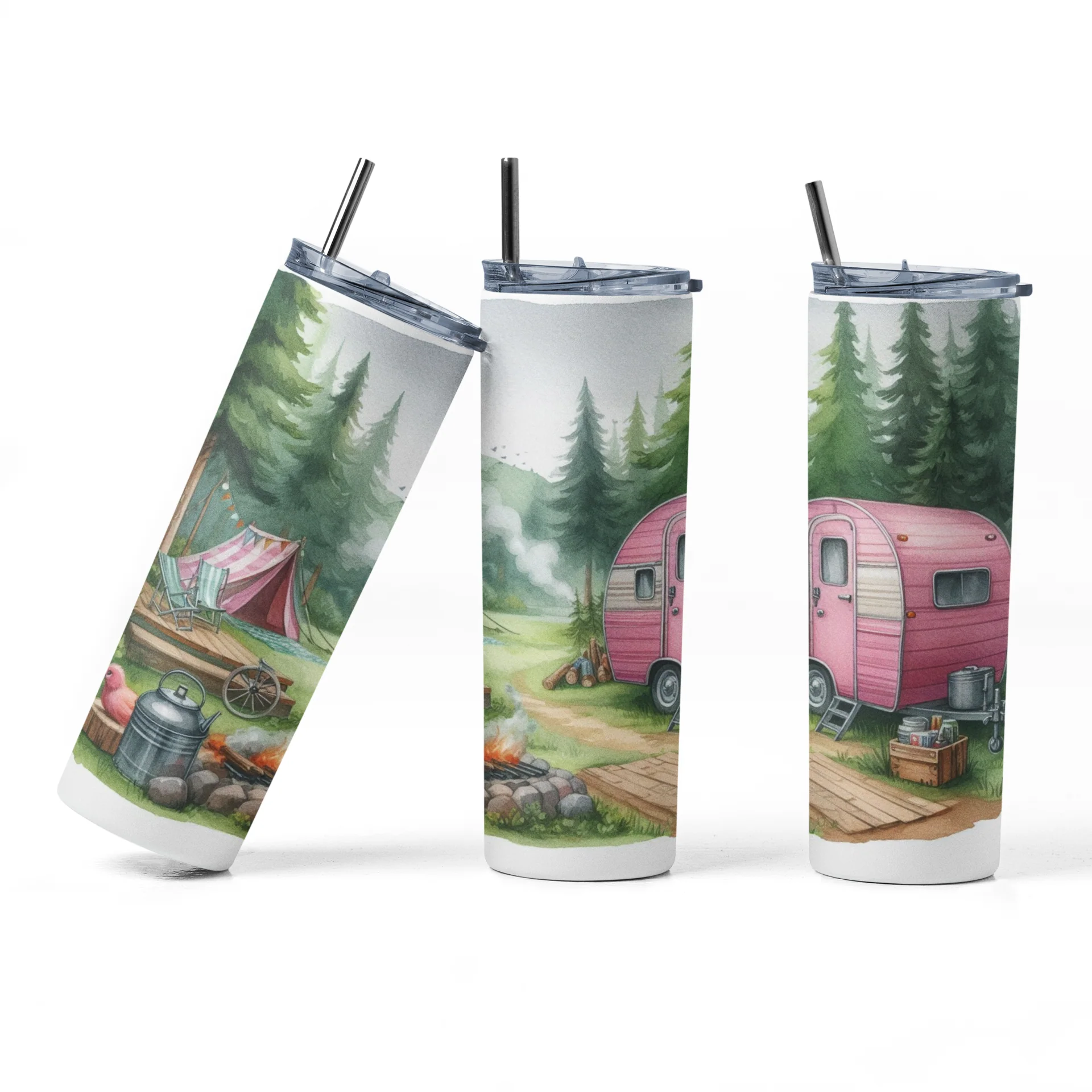 Bouteille isotherme – Camping nature rose