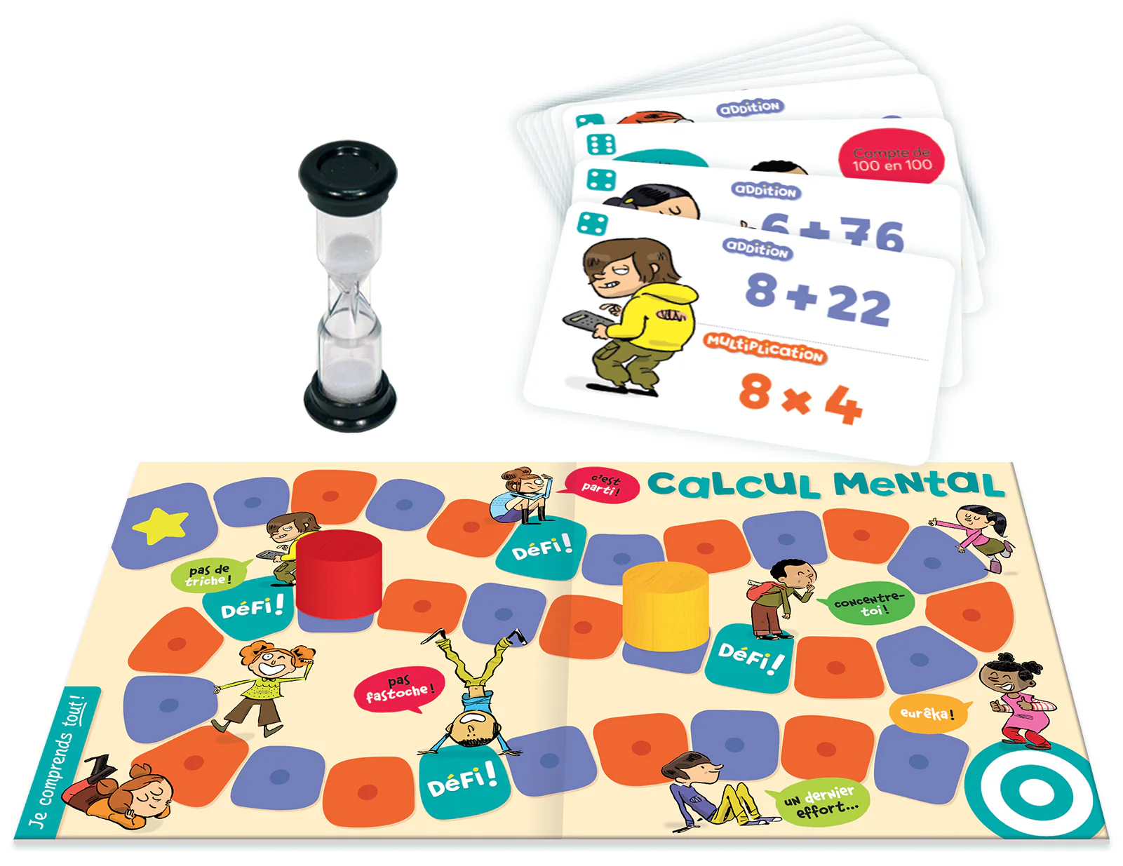 Un jeu pour apprendre les mathématiques de manière simple et amusante. Avec un plateau, un sablier et deux pions en bois. 2 joueurs. Plusieurs défis rigolos avec 80 cartes.