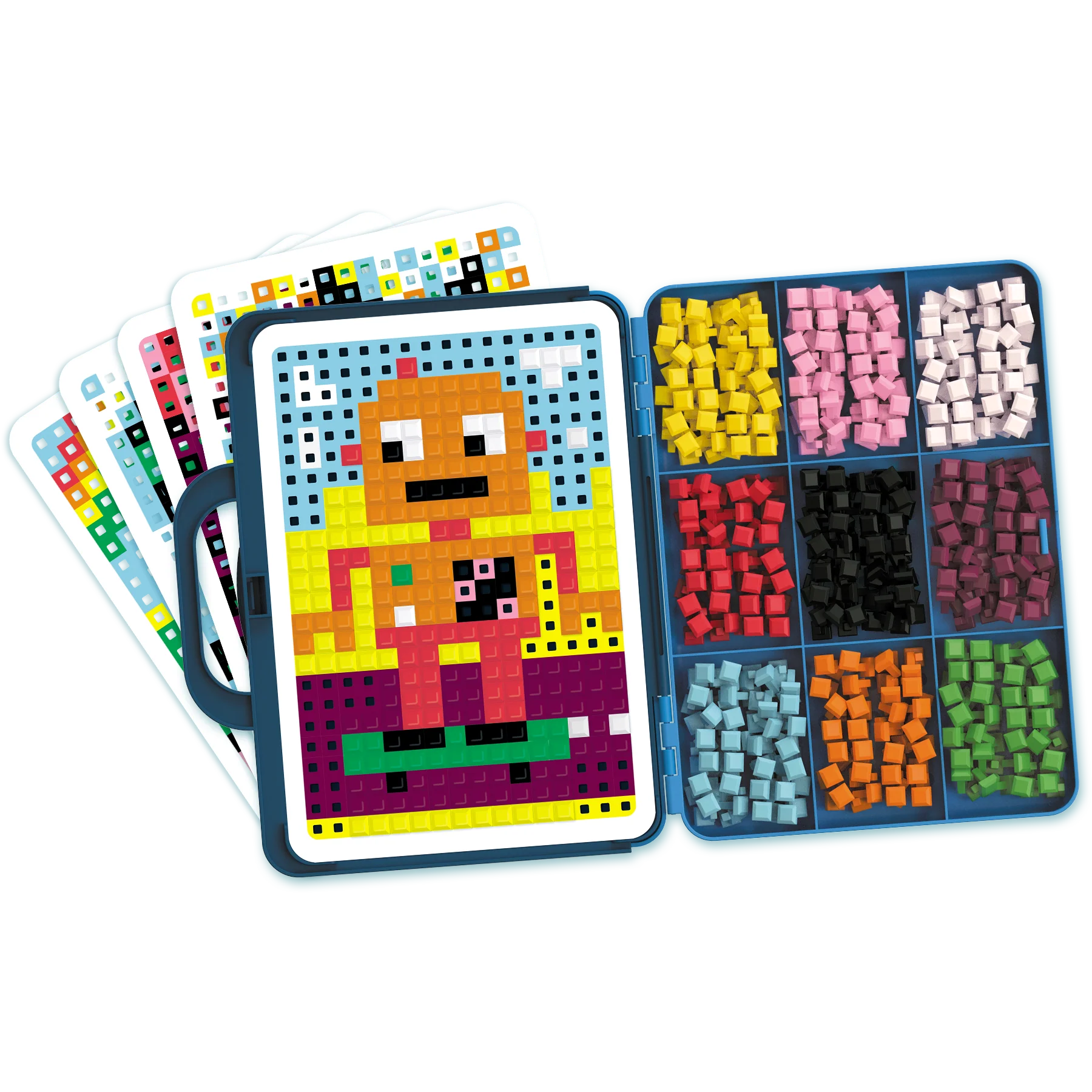 Un jeu de reconnaissance des couleurs, de manipulation fine, d’imagination et de création. Avec 10 grandes illustrations, un guide avec 8 illustrations supplémentaires et 675 pions de 9 couleurs différentes, l’enfant complète et crée ses dessins.