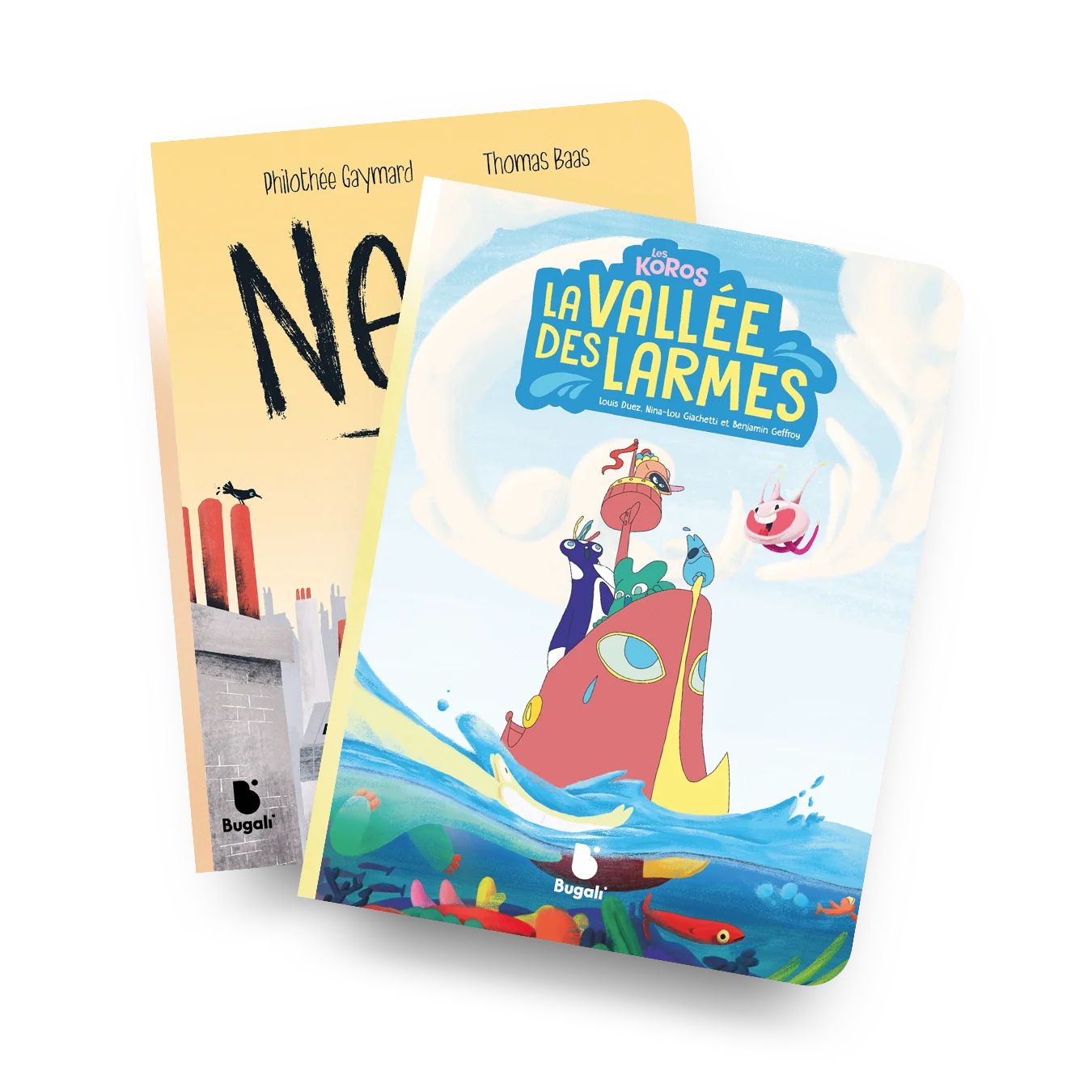 Le duo d’histoires hautes en couleurs ! Deux livres signatures Bugali pour partir à la quête de nouveaux mots et sensibilisez vos oreilles aux airs d’Opéra. Vivez un doux mélange d’aventure et de concerto. Ce duo pour découvrir des univers aux multiples émotions et couleurs contient :