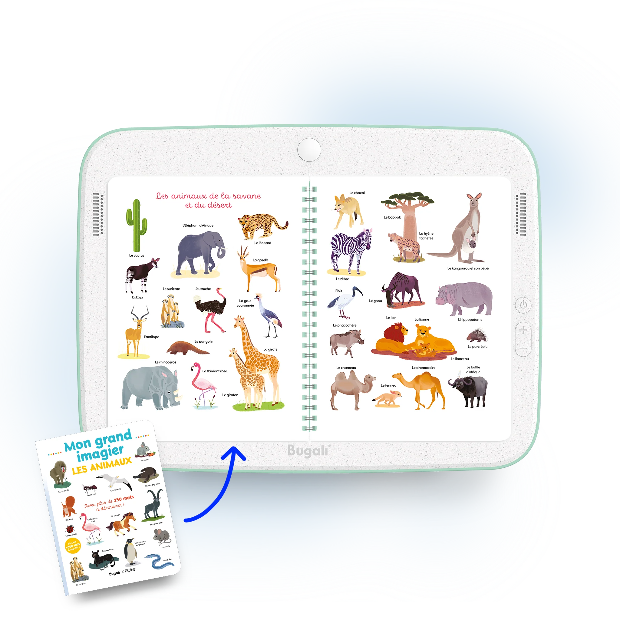 Le duo pour découvrir le monde en GRAND ! Vos enfants entendent et apprennent des milliers de mots du quotidien ainsi que les noms des animaux de tous les continents… à travers de grandes scènes à regarder, des jeux, des comptines…