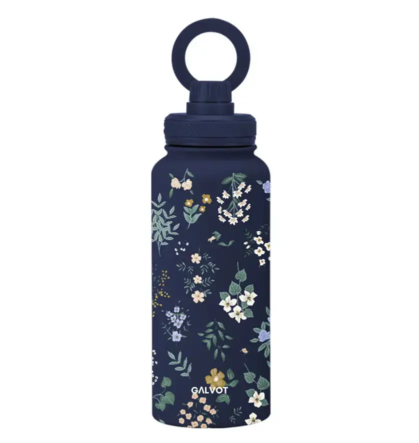 Faites le choix d’une hydratation élégante et pratique avec la gourde MagSafe EasyMag fleurie bleu profond de Galvot.