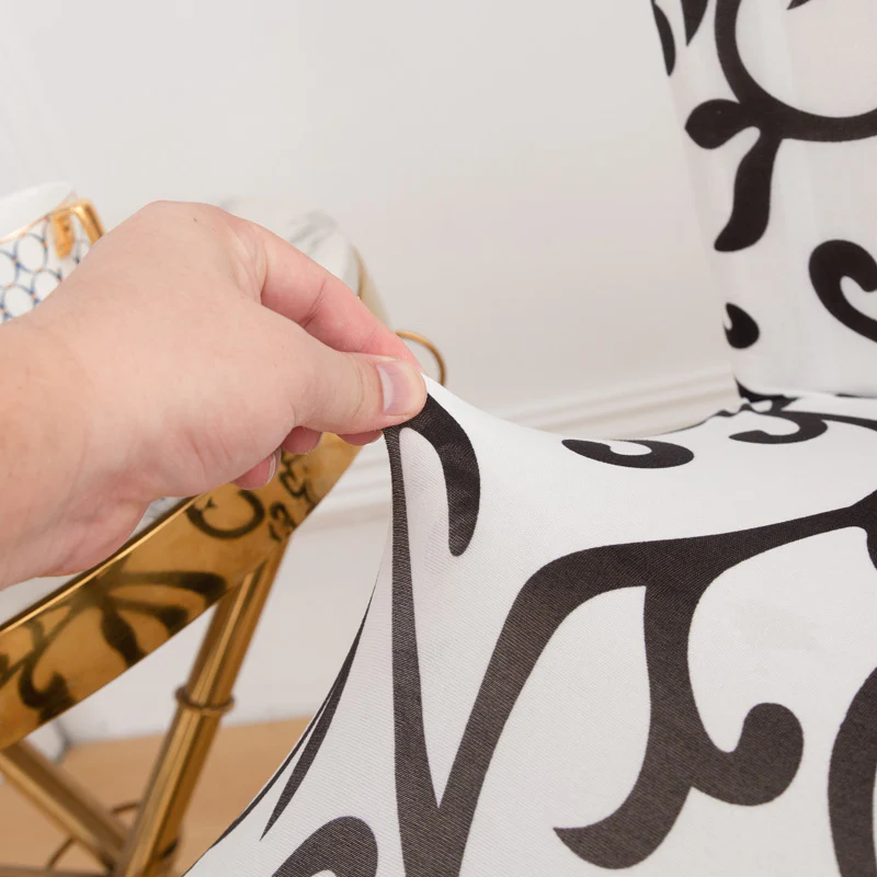Cette housse de chaise intemporelle n’est pas qu’un simple accessoire, c’est une transformation stylistique qui confère à votre intérieur une allure de galerie d’art. Le design noir et blanc est choisi pour son élégance versatile, capable de s’adapter à diverses atmosphères, des plus modernes aux plus classiques.
