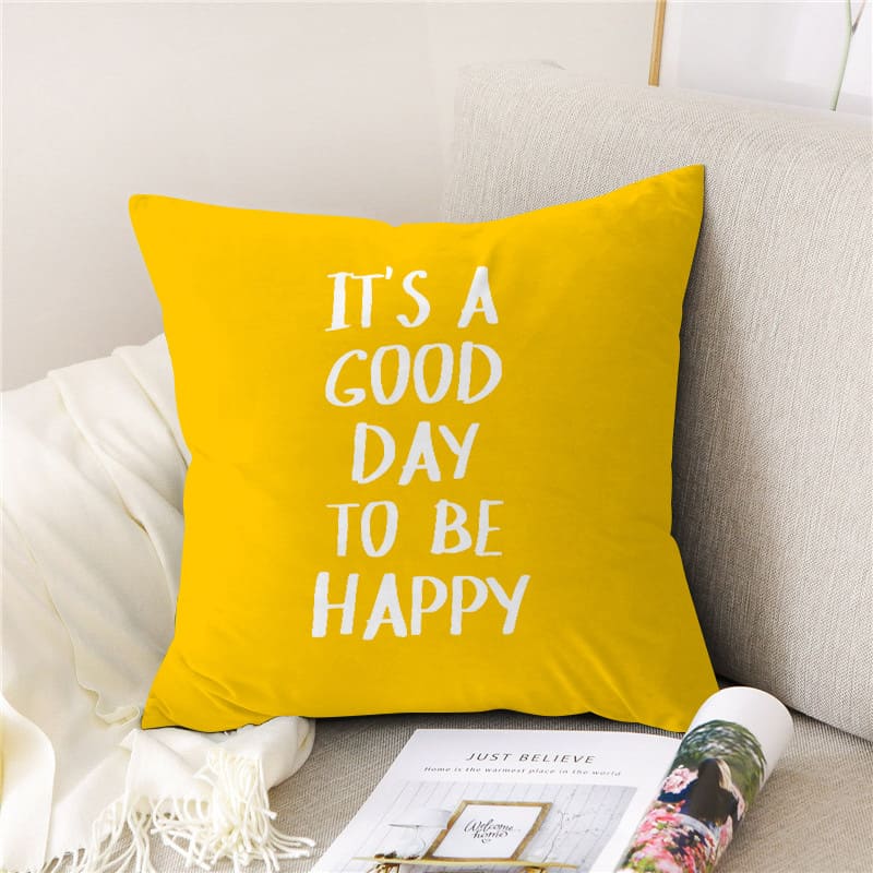 Apportez une touche de soleil à votre intérieur avec la housse de coussin Wayfair. Son message optimiste « It’s a good day to be happy » illumine instantanément n’importe quelle pièce. Placez-la sur votre canapé, fauteuil ou même dans votre chambre pour répandre la bonne humeur et une ambiance chaleureuse. 😃