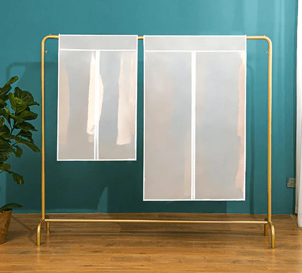 Gardez vos vêtements propres, secs et protégés de la poussière et autres dommages accidentels grâce à notre Housse de Vêtement à Suspendre Transparente. Elle est économique et réutilisable – il suffit de la suspendre pour ranger vos vêtements pour un autre jour.