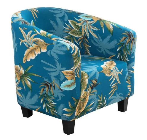 Protégez votre fauteuil vintage et ajoutez-lui du style en choisissant cette Housse de Fauteuil Cabriolet Tropicale Bleue. Dotée d’un fond bleu et d’un design chic, présentant des feuilles tropicales dorées, elle trouvera bien sa place dans votre chambre à coucher, votre salon ou vos meubles de patio. Fabriquée en polyester , elle convient à un fauteuil cabriolet de taille standard.