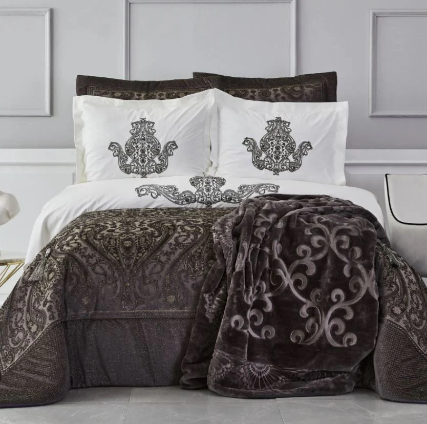KARACA HOME GLAMOUR Anthracite Ensemble linge de lit complet 10 pièces