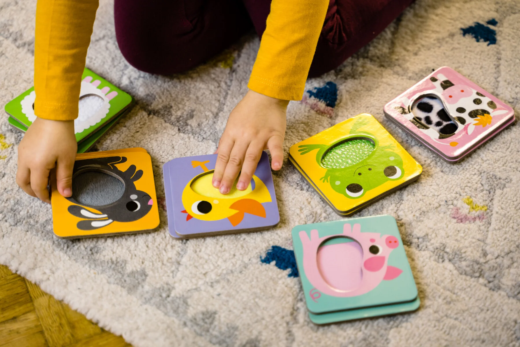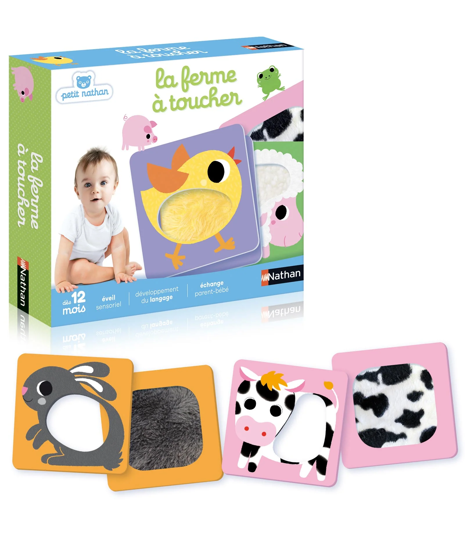 Toucher, caresser, manipuler: autant d’expériences multisensorielles qui aident Bébé à découvrir et explorer son environnement. Il fait travailler sa mémoire mais aussi sa motricité en associant chaque animal de la ferme avec son pelage. Un jeu tout doux à partager sans compter avec les parents!