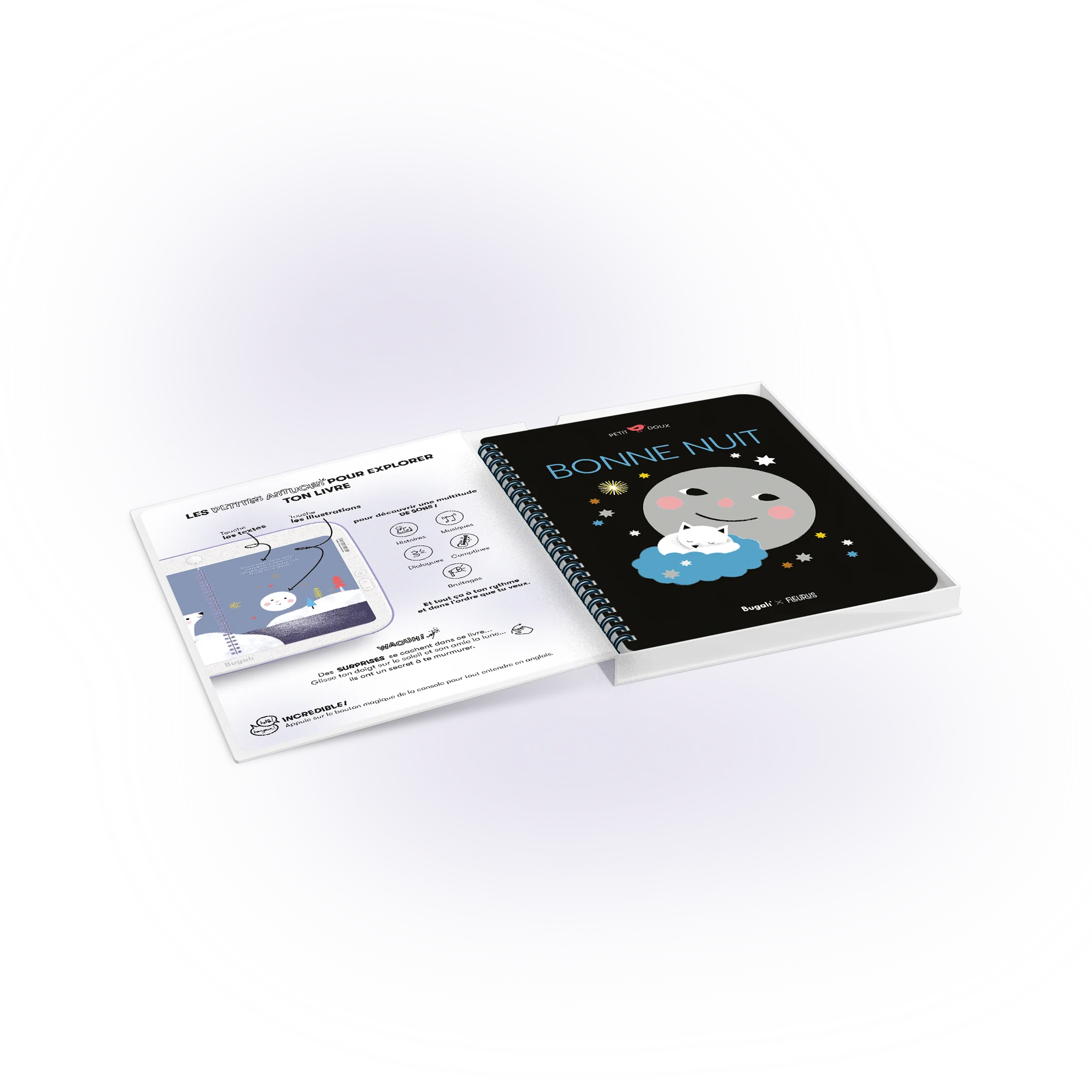 Ce livre contient histoires, musiques, dialogues, comptines, bruitages.