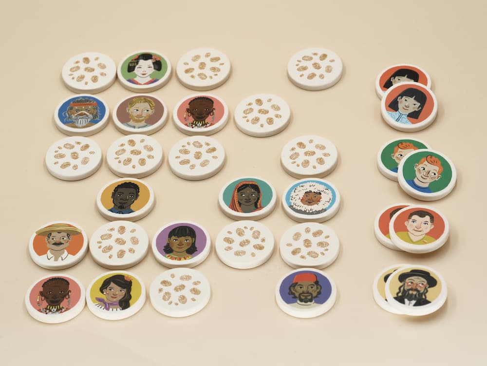 Ce jeu de mémoire en bois invite votre enfant à retrouver les paires en observant les portraits de personnes issues de différentes cultures du monde. En retournant les jetons, en mémorisant leur emplacement et en comparant les détails, votre enfant exerce sa concentration tout en découvrant la richesse et la diversité des visages et traditions.