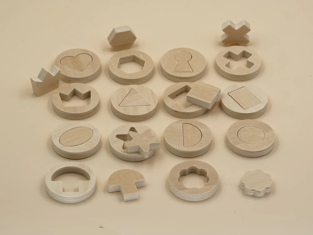 Ces formes à encastrer invitent votre enfant à manipuler, comparer et résoudre ses premières petites énigmes. Chaque disque en bois contient une forme à retirer, encastrer, tracer ou utiliser pour créer des motifs.