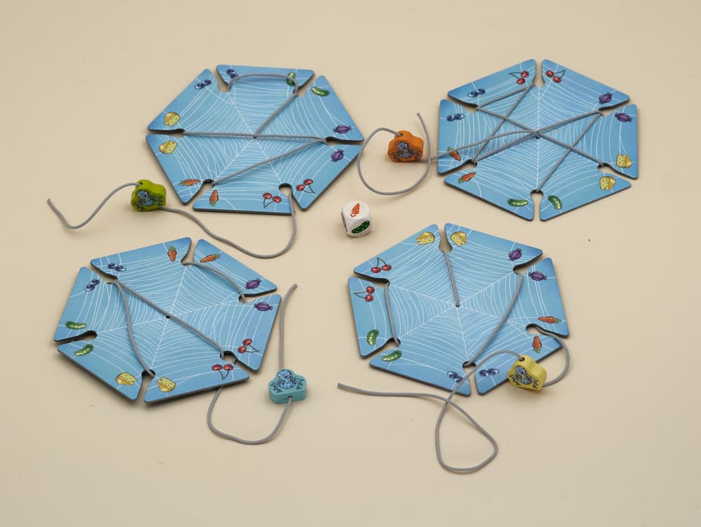 Dans ce jeu, votre enfant tisse un fil à travers les encoches de la toile de l’araignée selon le résultat du dé. Le geste de passer le fil, répété concerté, renforce la dextérité et l’attention motorisée.