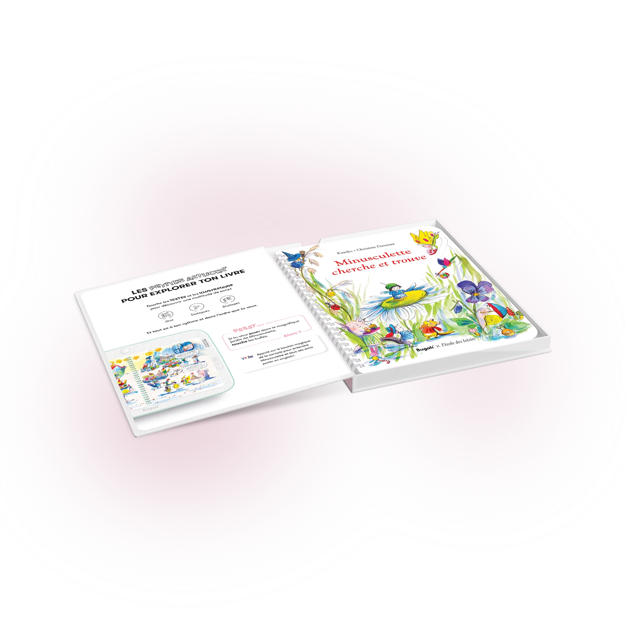 Un livre-jeu de Kimiko & Christine Davenier (l’école des loisirs), adapté par Bugali, pour s’amuser dans le monde féerique de Minusculette !