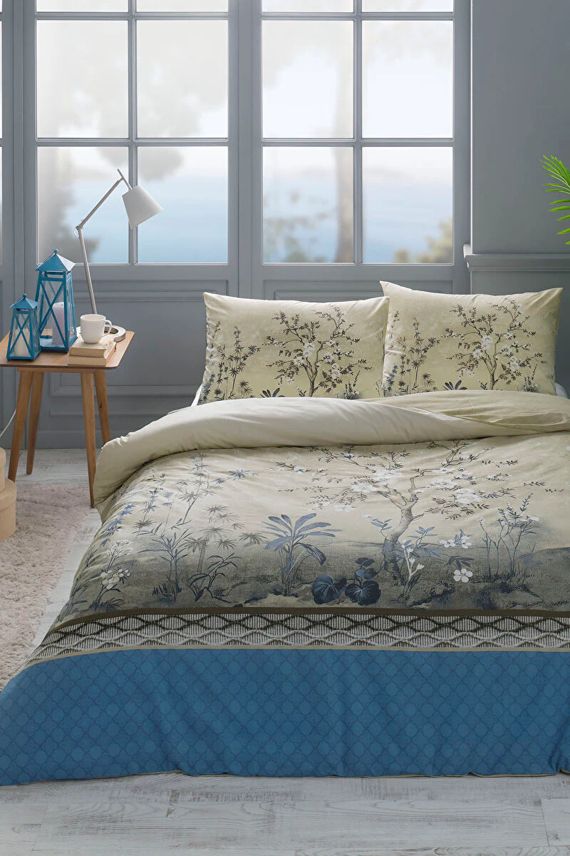 KARACA HOME AMAR Parure de lit 100% coton bleu 2 personnes