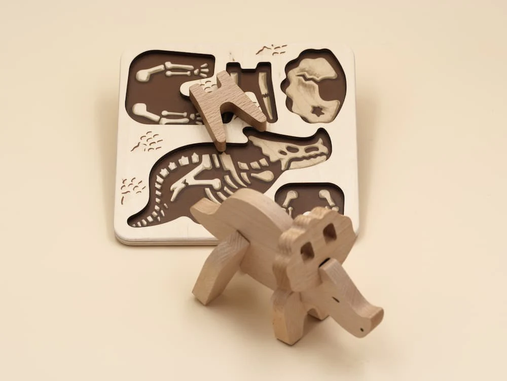 Ce puzzle 3D invite votre enfant à expérimenter, comparer les formes et assembler un véritable Tricératops en bois. Les empreintes d’os gravées dans le plateau stimulent la curiosité et offrent un premier contact ludique avec l’univers de la paléontologie.