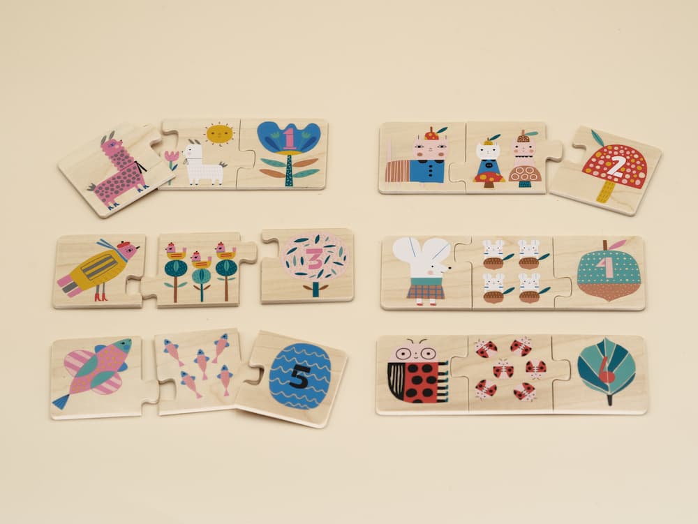 Ce set de puzzles associe chaque animal avec son petit, ce qui aide votre enfant à comprendre les relations, comparer les formes et organiser visuellement l’espace. En cherchant les bonnes paires, il exerce sa logique, renforce sa mémoire visuelle et développe son vocabulaire autour des animaux et des liens familiaux. La manipulation des pièces sollicite aussi la motricité fine.