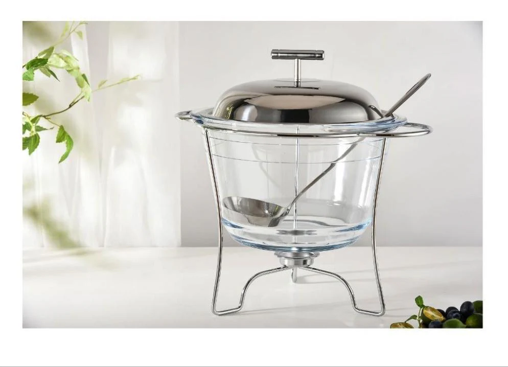 Réchauffeur d’aliments 4L chrome Contenu : Couvercle Réchauffeur Soupière Bougie Matière : Verre Acier inoxydable