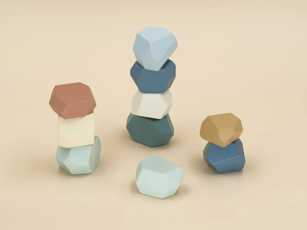 Ces 10 rochers en bois, tous différents en forme, couleur et poids, invitent l’enfant à créer des tours originales et à expérimenter l’équilibre. Les formes irrégulières rendent chaque construction unique et stimulent la concentration. Un jeu captivant qui développe la coordination œil-main et encourage la résolution de problèmes.