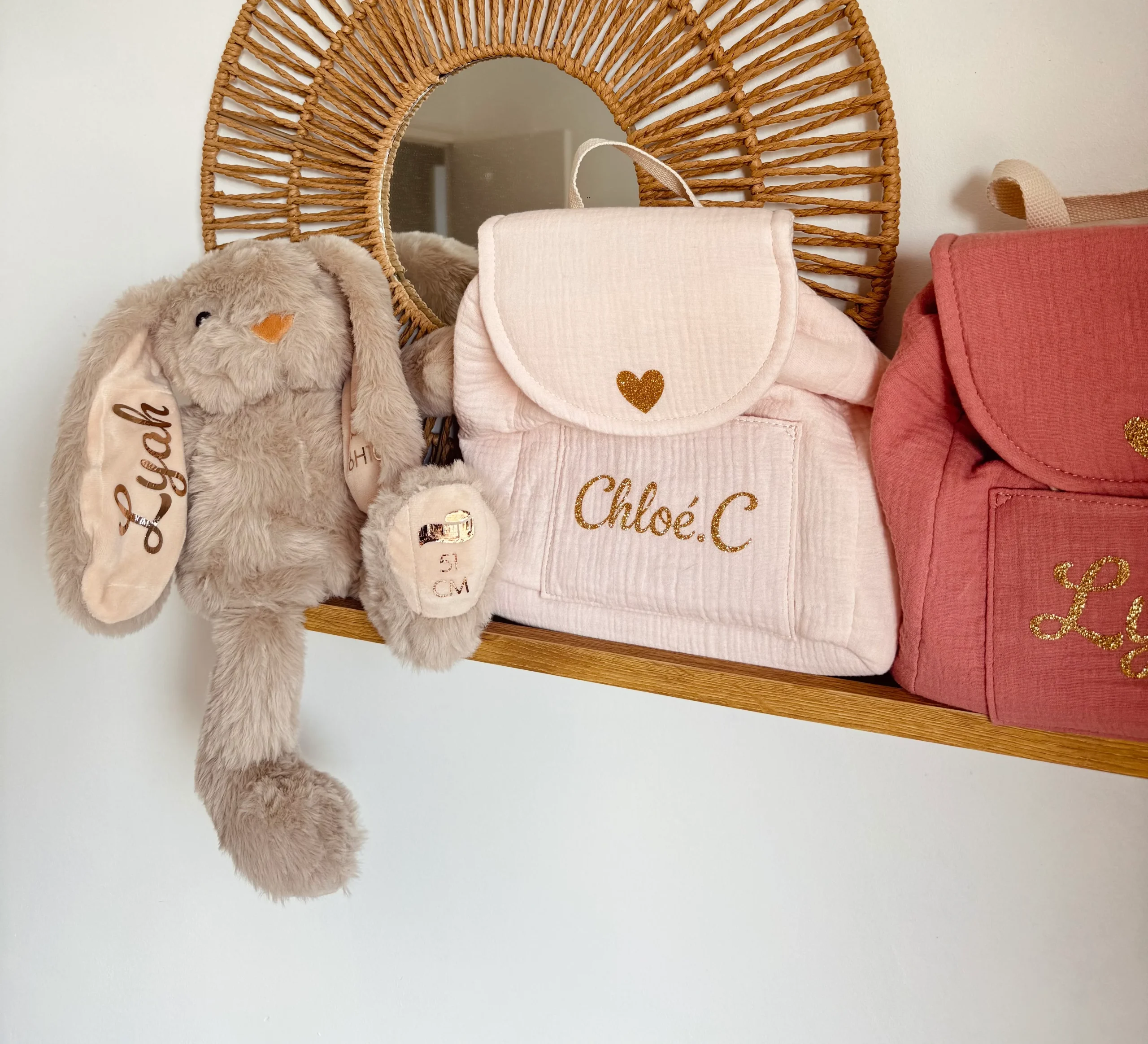 Sac à dos en gaz de coton pour vos bébés ! Personnalisé avec le prénom de votre enfant!