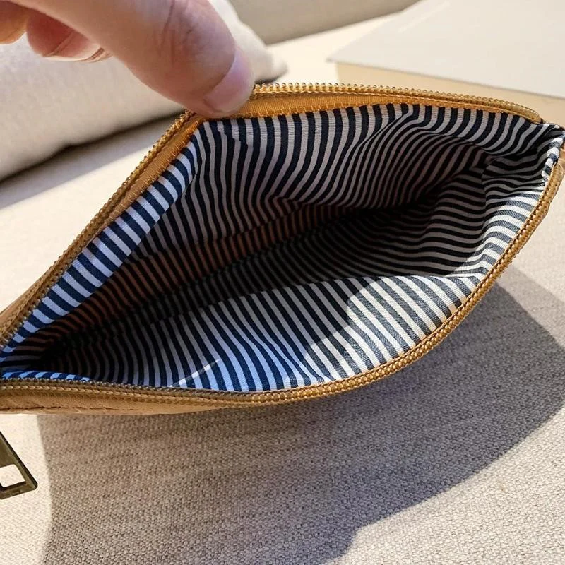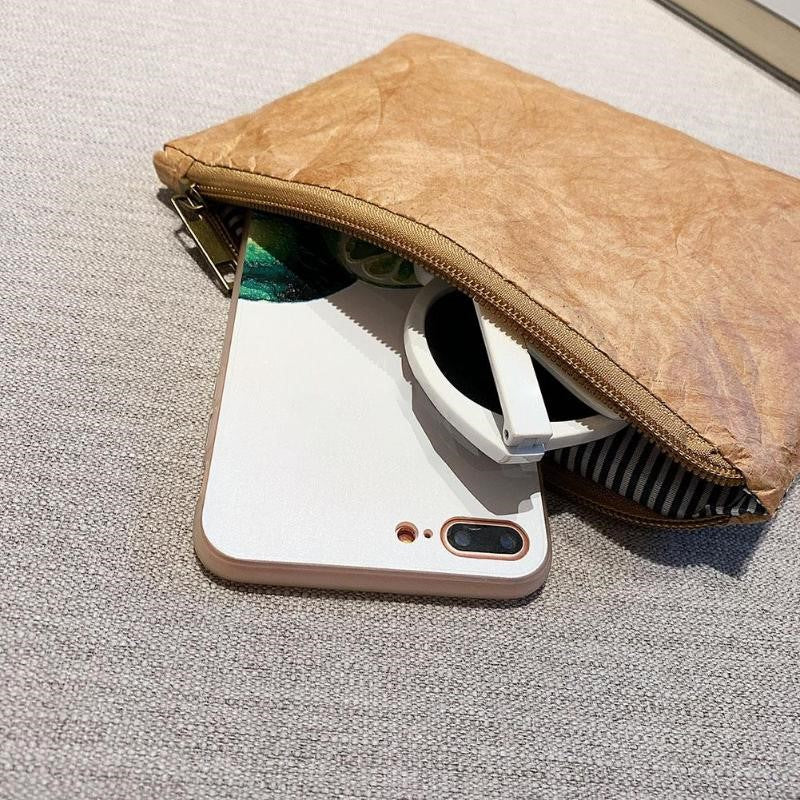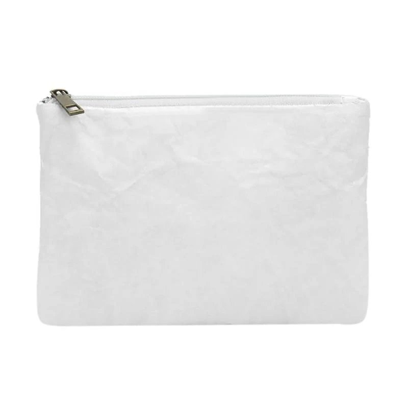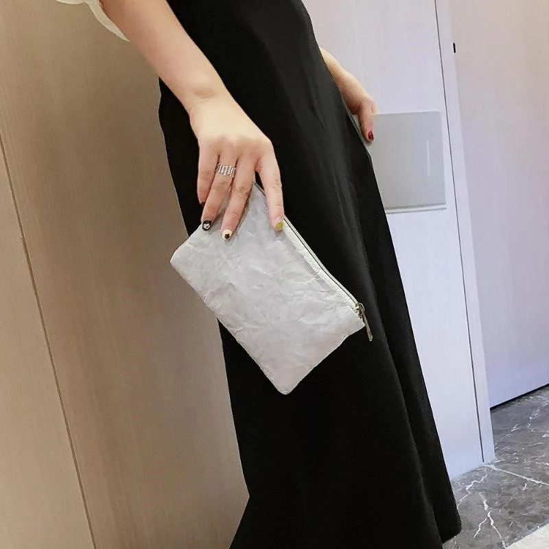 Petite pochette à fermeture éclair à l’aspect papier. Fait de tissu Tyvek. Design minimaliste simple, original, léger et durable.