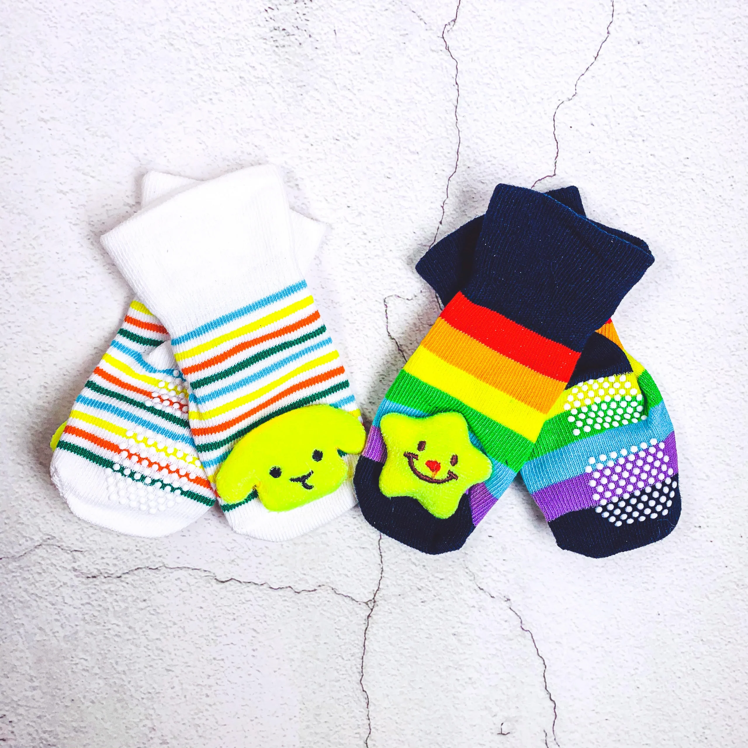 - 1 paires de chaussettes (6-12 mois) avec caoutchouc antidérapant. Les pieds du bébé seront protégés et maintenus au chaud