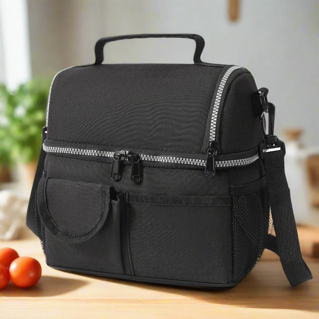 Les multiples compartiments vous permettent d’organiser votre repas parfaitement : plat principal d’un côté, dessert et boisson de l’autre, couverts et serviette dans la poche extérieure. Tout est à portée de main, parfaitement organisé.