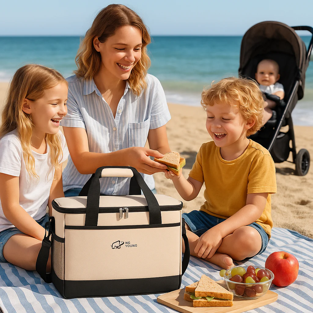 La polyvalence de ce compagnon beige vous accompagne au-delà des simples pique-niques. Emportez-le au camping, lors de vos journées à la plage, ou même pour vos courses alimentaires les jours de grande chaleur.