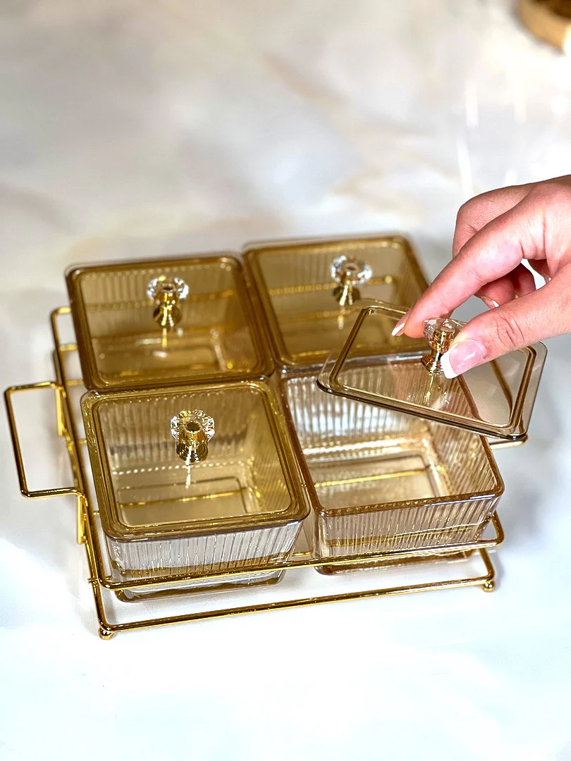 TREND HOME Plateau apéritif avec 4 bols carrés en verre avec couvercle