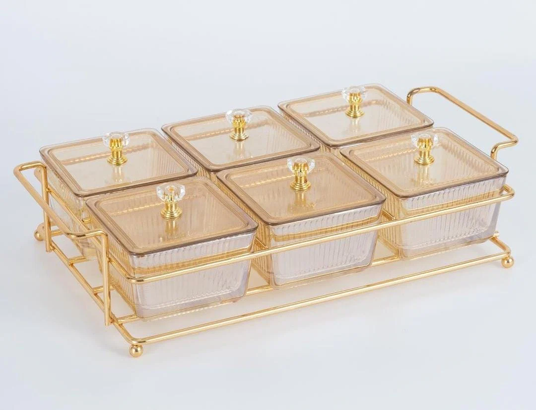 TREND HOME Plateau apéritif avec 6 bols carrés en verre avec couvercle