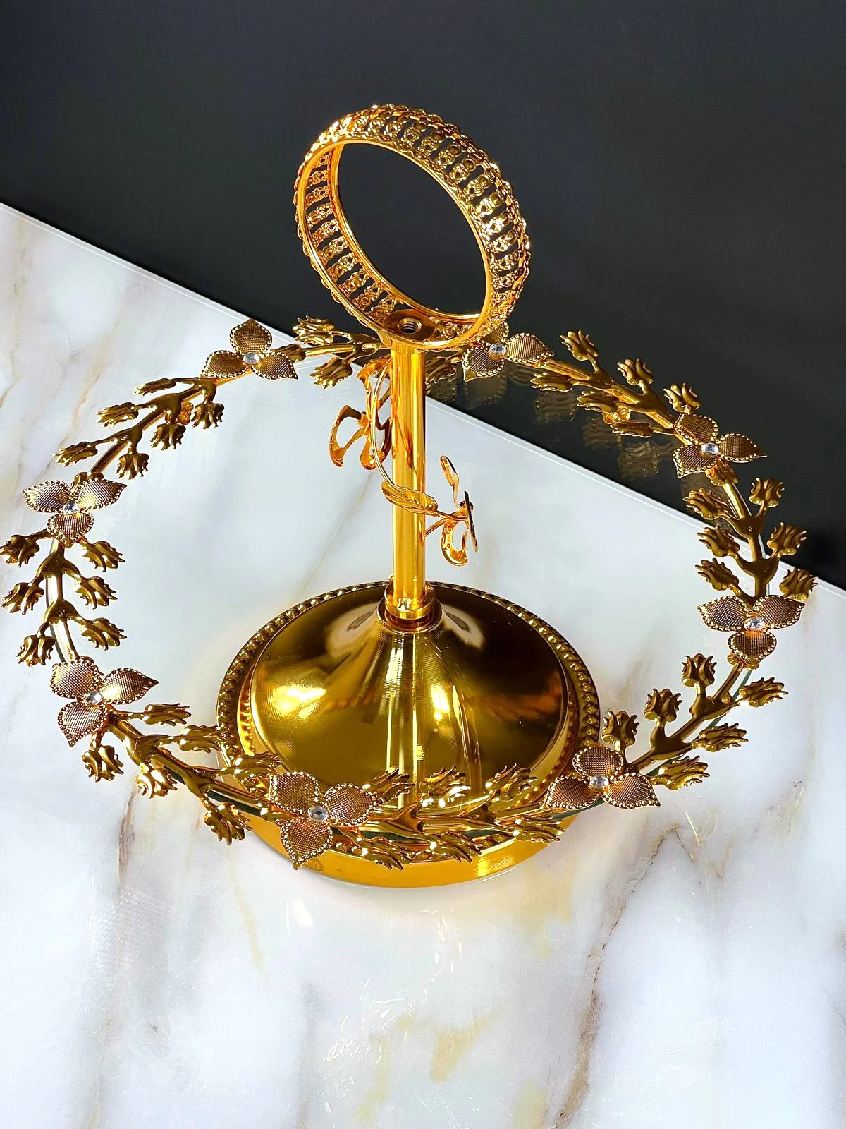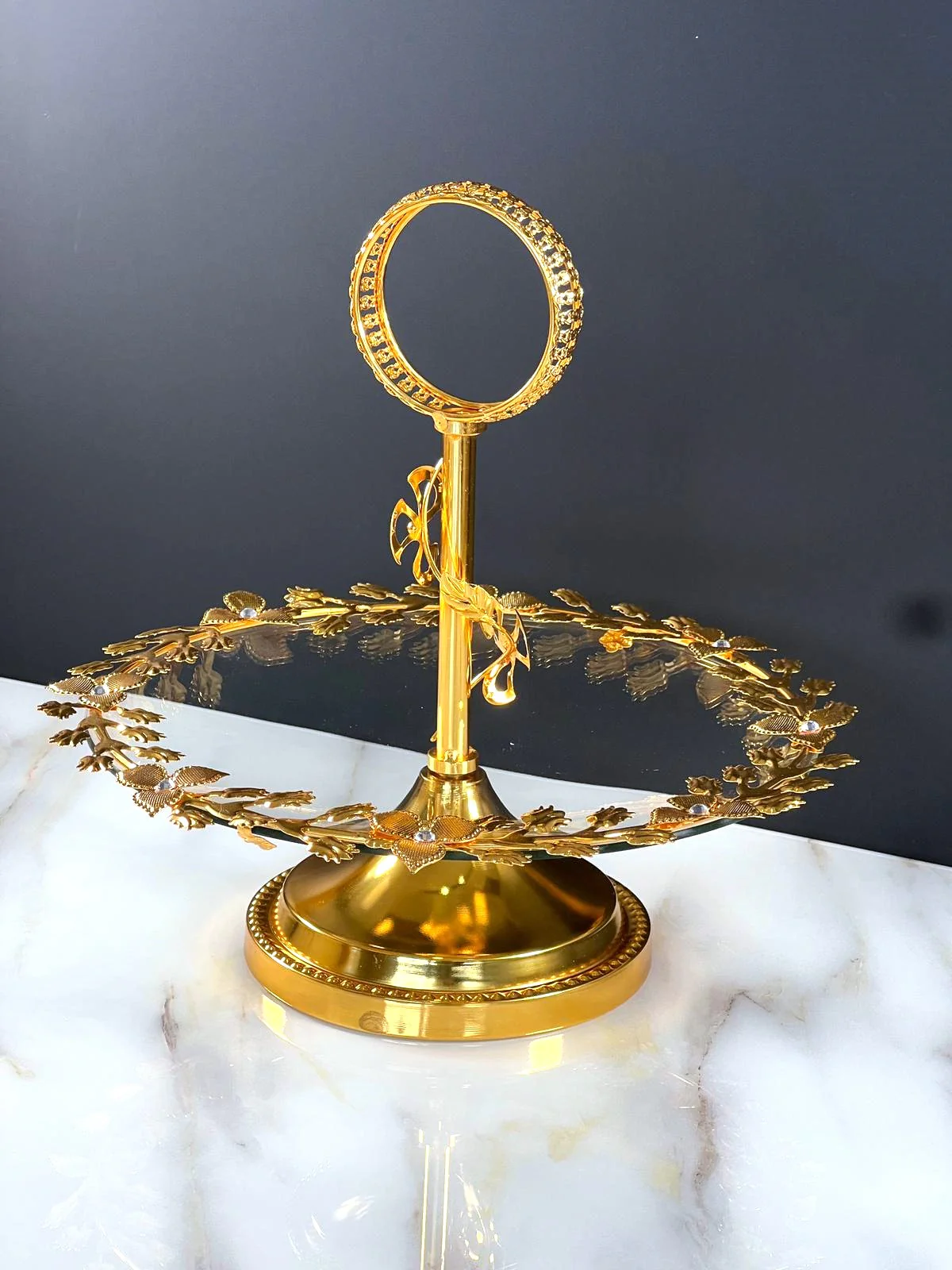 TREND HOME Présentoir à gâteau en verre et ornements dorés