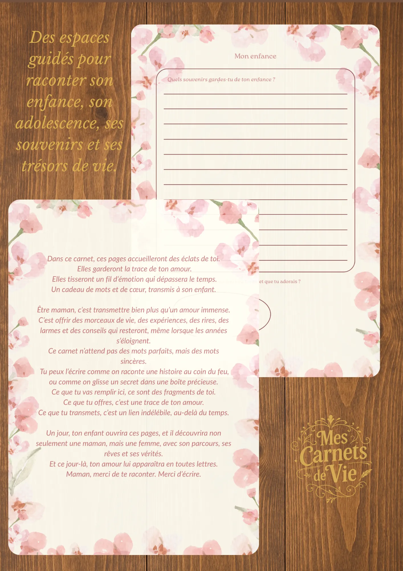 Caractéristiques du carnet 📘 83 pages guidées 📐 Format A4 🖐️ Couverture souple 📝 Espaces d’écriture, photos et souvenirs Ce carnet permet de : Raconter l’enfance, l’adolescence et le parcours de vie de maman Partager son expérience de la maternité, ses défis et ses plus beaux souvenirs Transmettre des conseils, des valeurs et des messages […]