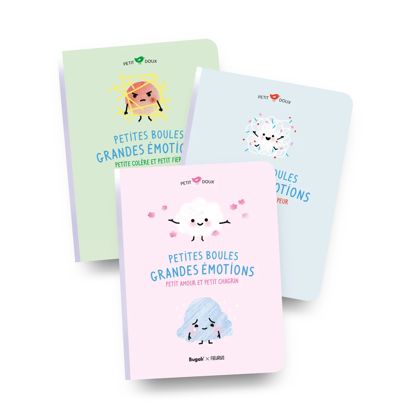 Le trio des émotions ! Trois livres pour faire découvrir aux tout-petits leurs émotions et partager un moment de bien-être avec eux, en chanson. Petite boule change au gré de ses émotions. Hop ! Elle devient Petit amour, Petit chagrin ou Petite colère, Petit fier ou encore Petite joie, Petite peur…