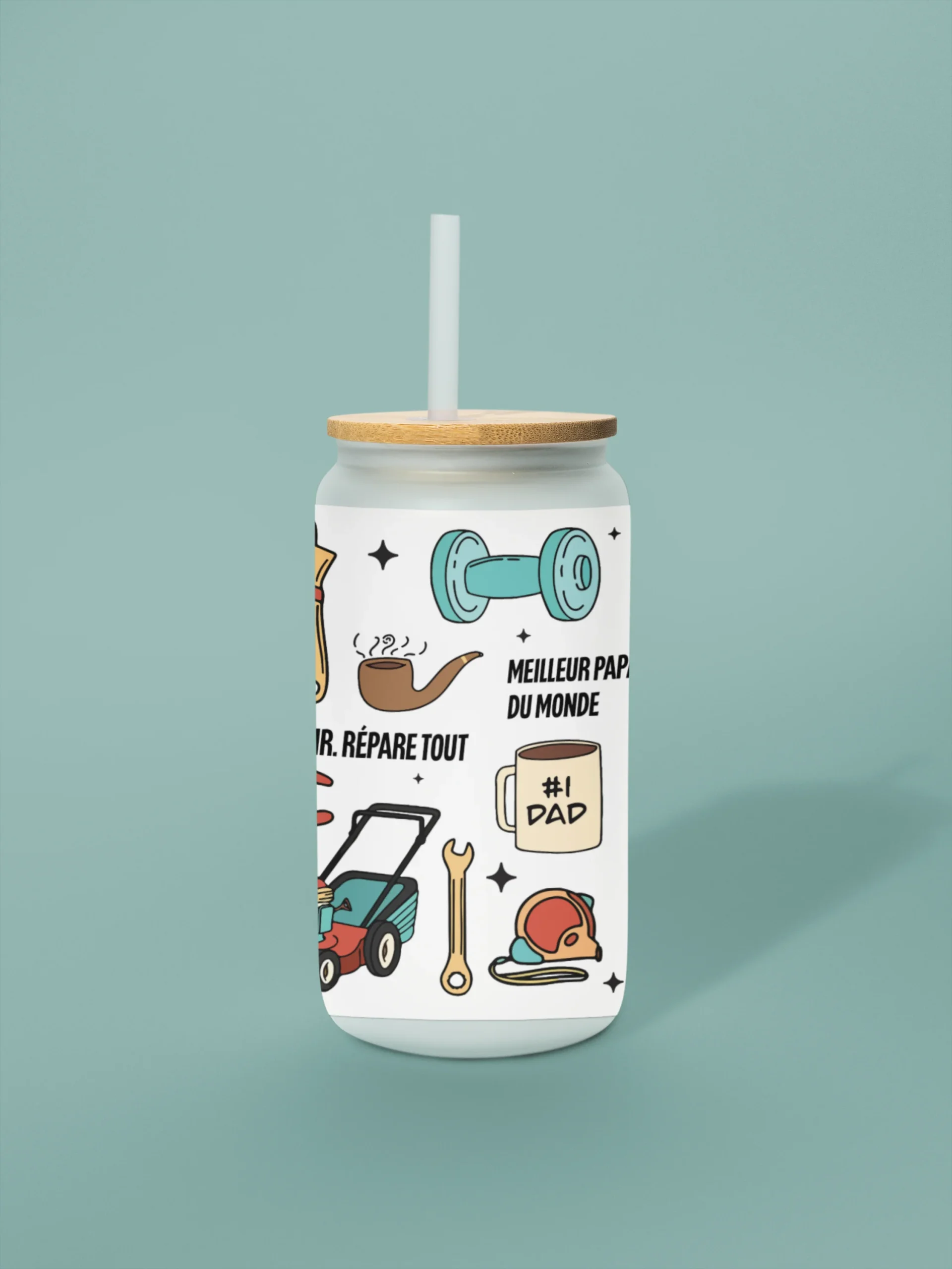 Ce verre givré est idéal pour les amateurs de café glacé ou de boissons stylées. Son design exprime parfaitement la fierté que nous ressentons pour notre papa.