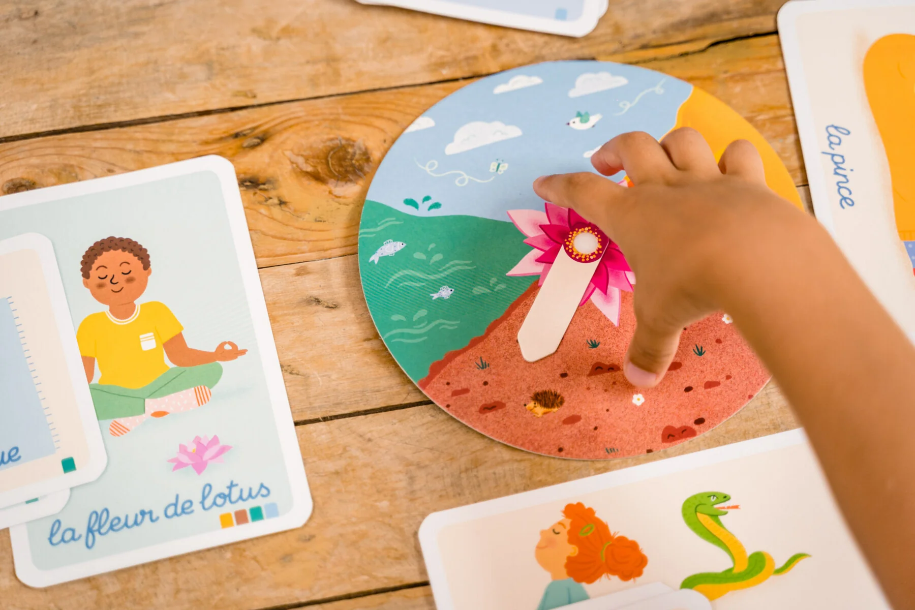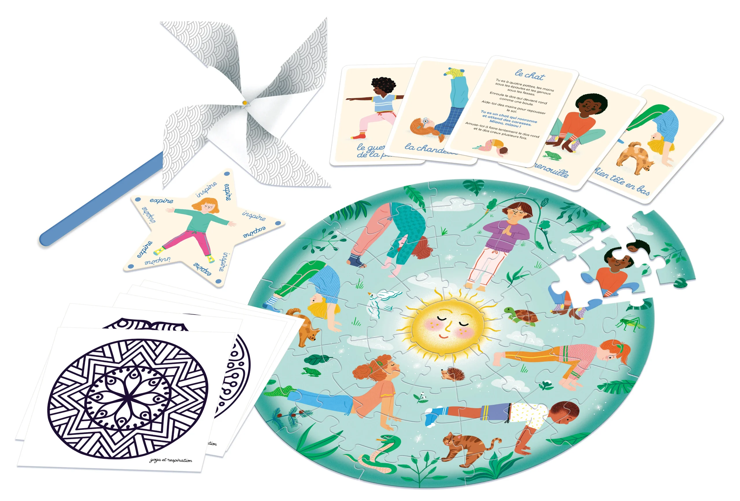 Un matériel original et de nombreuses activités pour découvrir ses premières postures de yoga, apprendre à bien respirer et à se relaxer. Le chat, l’arbre, l’étoile de mer et l’oiseau qui s’envole…